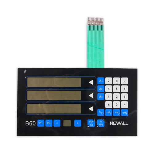 薄膜開(kāi)關(guān)是薄膜開(kāi)關(guān)的典型形式。這類薄膜開(kāi)關(guān)之所以稱為柔性,是因?yàn)樵摫∧ら_(kāi)關(guān)的面膜層、隔離層、電路層全部由各種不同性質(zhì)的柔性薄膜所組成。柔性薄膜開(kāi)關(guān)的電路層,均采用電器性能良好的聚酯薄膜(PET)作為開(kāi)關(guān)電路圖形的載體,此層也分裝手感彈片、上下電路。由于聚酯薄膜所具有性質(zhì)的影響,使得該薄膜開(kāi)關(guān)具有良好的絕緣性、耐熱性、抗折性和較高的回彈性。開(kāi)關(guān)電路的圖形,包括開(kāi)關(guān)的聯(lián)機(jī)及其引出線均采用低電阻,低溫條件下固化的導(dǎo)電性涂料印刷而成。因此,整個(gè)薄膜開(kāi)關(guān)的組成,具有一定的柔軟性,不僅適合于平面體上使用,還能與曲面體配合。柔性薄膜開(kāi)關(guān)引出線與開(kāi)關(guān)體的本身是一體的,在制作群體開(kāi)關(guān)的聯(lián)機(jī)時(shí),將其匯集于薄膜的某一處,并按設(shè)計(jì)指定的位置和標(biāo)準(zhǔn)的線距向外延伸,作為柔軟的、可任意彎曲的、密封的引出導(dǎo)線與整機(jī)的后置電路相連。